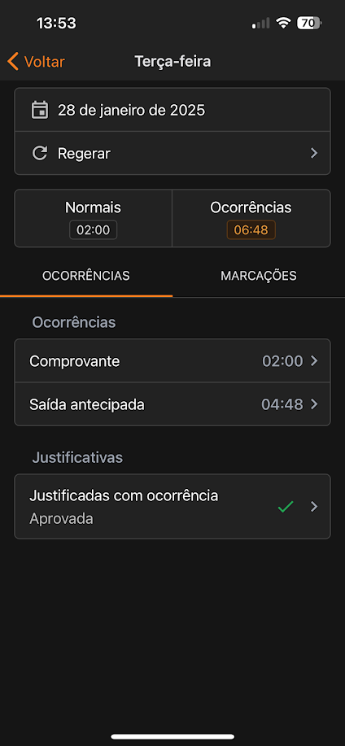 As Justificativas no espelho do colaborador são solicitações de alterações de ocorrências que ocorreram durante o período de trabalho, como atrasos, saídas antecipadas, faltas, entre outros. A solicitação é realizada pelo colaborador e, após a análise do gestor, a ocorrência poderá ser alterada.