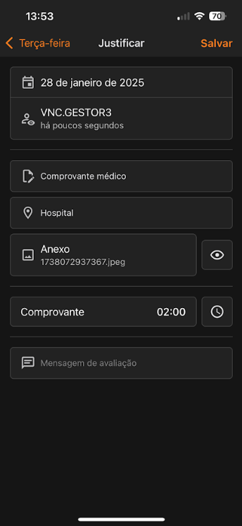 Caso a Justificativa seja aprovada, o colaborador será notificado e a ocorrência será alterada. Para confirmar, clique em Salvar.