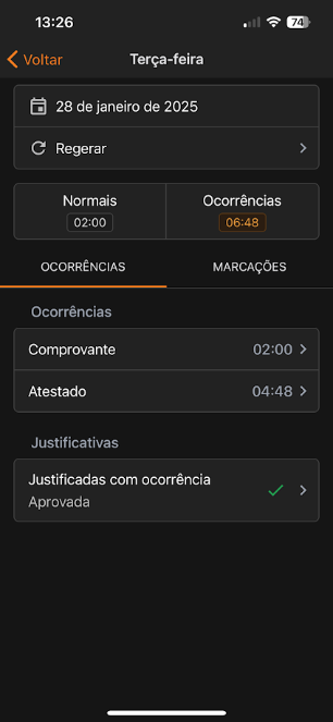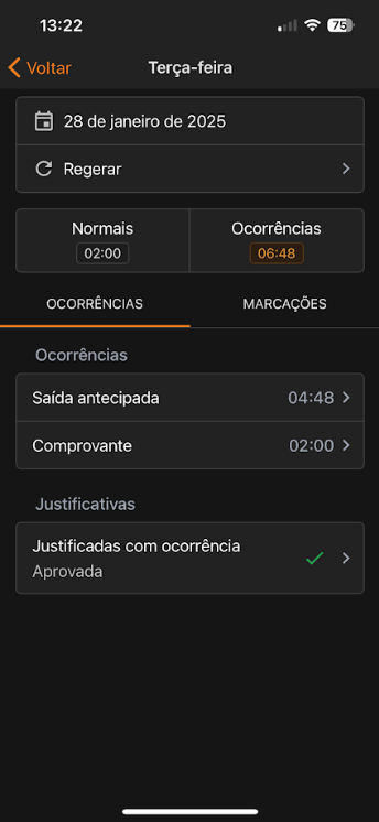As Ocorrências no espelho do colaborador são registros de eventos que ocorreram durante o período de trabalho, como atrasos, saídas antecipadas, faltas, entre outros. Além da opção de avaliar justificativas solicitadas pelo colaborador, o gestor poderá alterar o tipo de ocorrência sem a necessidade de solicitação.