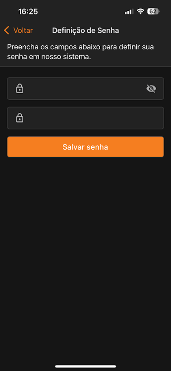 O próximo passo é informar o código de recuperação recebido por e-mail no passo anterior, ao pessionar Continuar, o colaborador poderá informar a nova senha de acesso ao aplicativo.