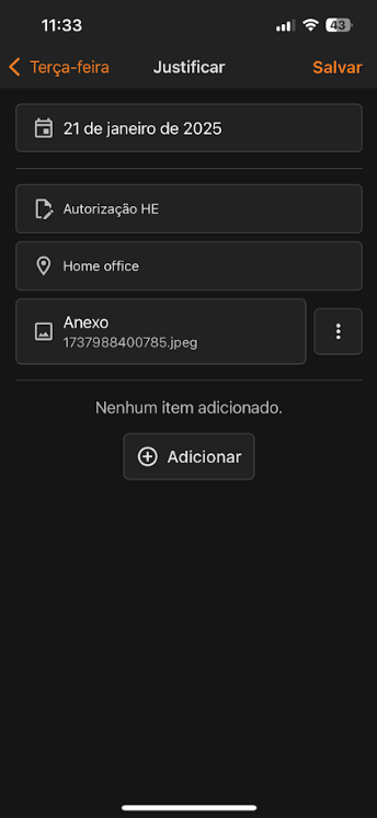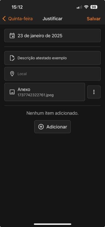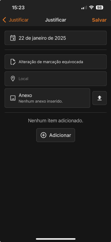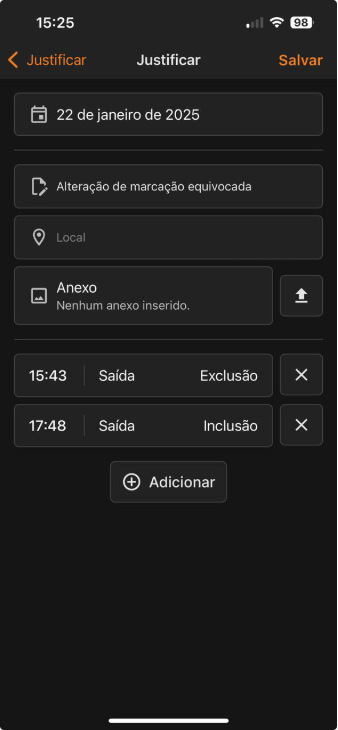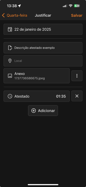 - Local: Uma breve descrição do local onde a justificativa foi realizada (Opcional).