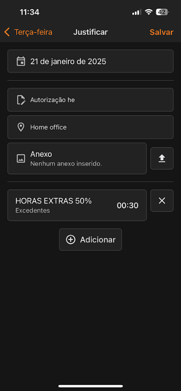 - Anexo: É possível anexar um arquivo de imagem para complementar a justificativa (Opcional).